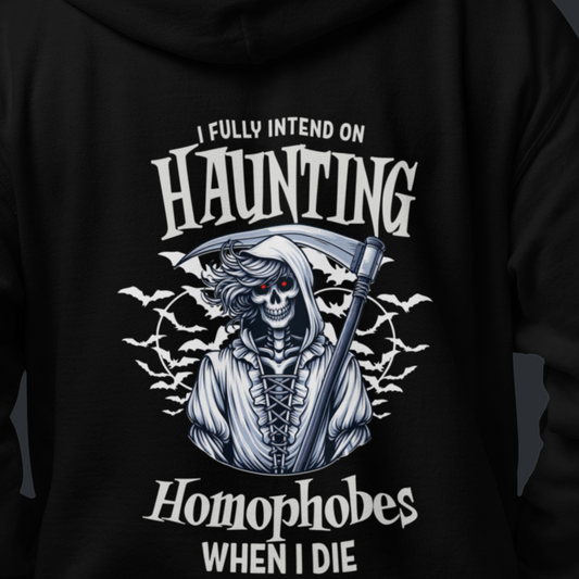 I FULLY INTEND ON HAUNTING HOMOPHOBES WHEN I DIE | Funny Gay Pride Hoodie