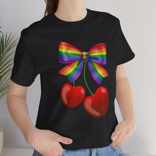 Coquette Cherrys & Pride Bow | Flirty LGBTQ Pride T-Shirt - Designed by Queer Energy